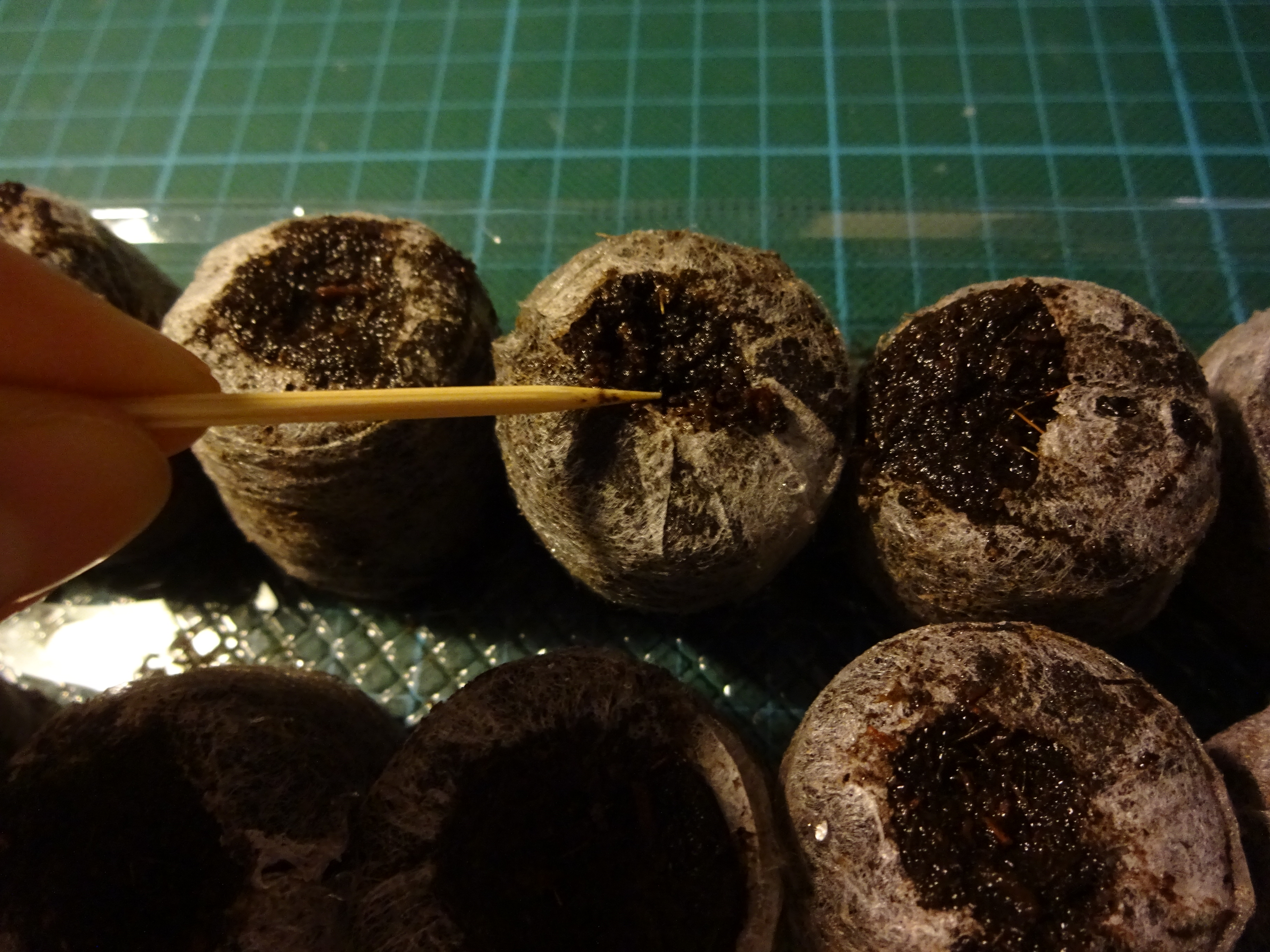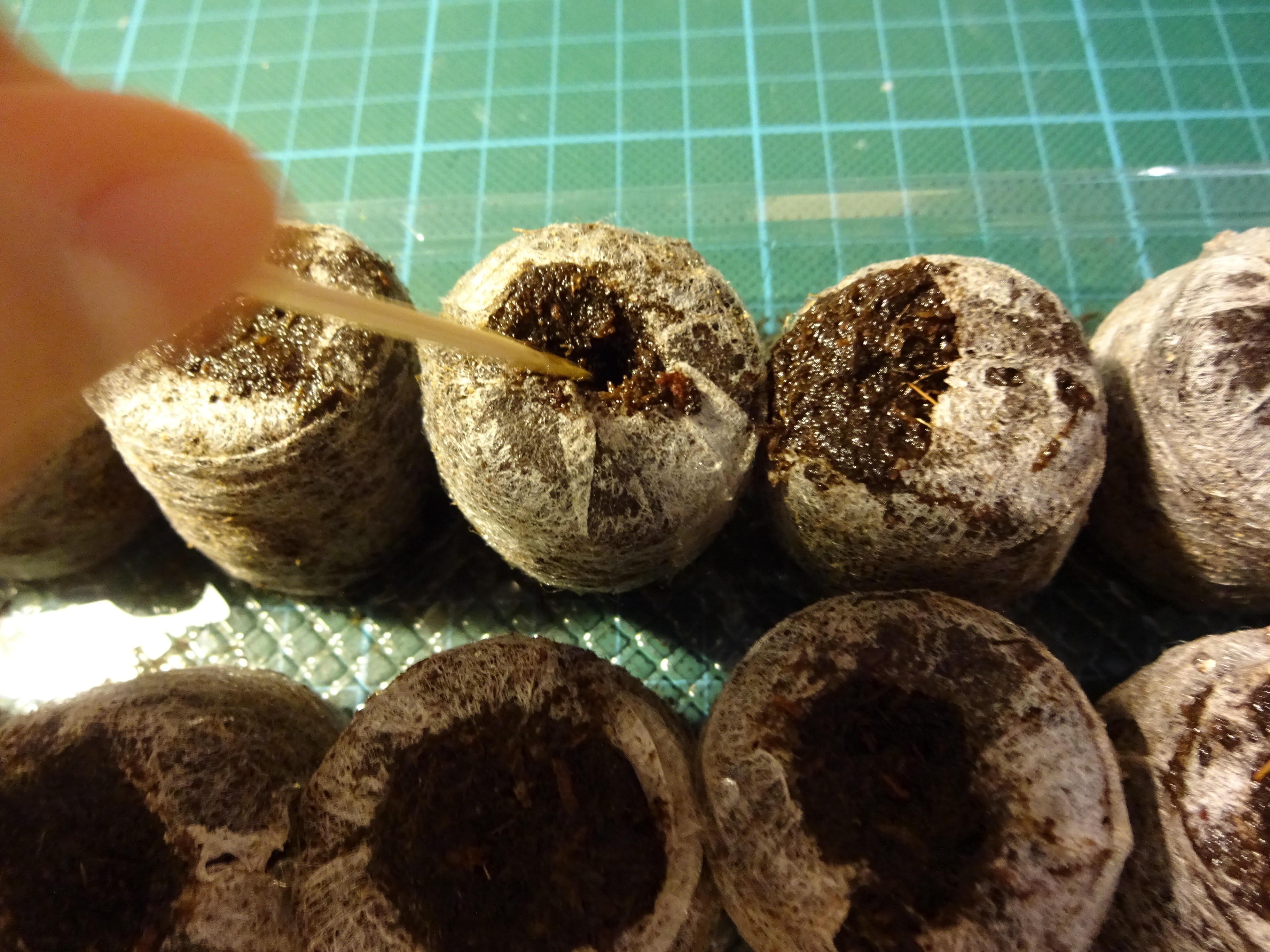 이쑤시개 혹은 적당히 뾰족한 것으로 가운데에 씨앗을 넣어줄 홈을 파준다.
