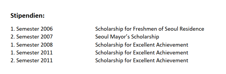 학력사항 및 장학금 Akademische Laufbahn, Stipendien